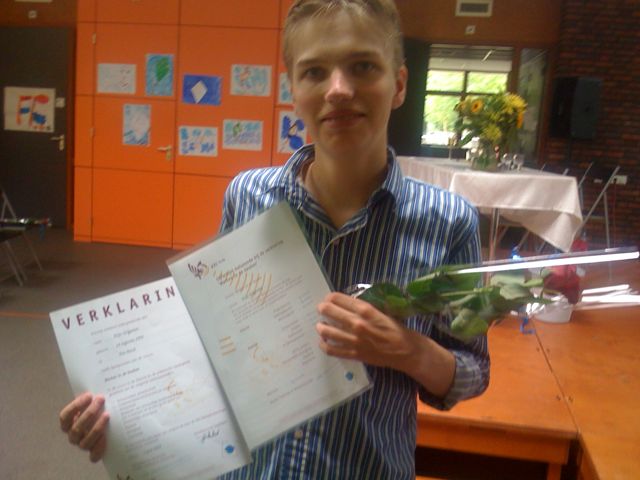Woensdag 21 juli 2010 was een belangrijke dag. De dag van de diploma-uitreiking op de school van Krijn: De Zwengel. Robin, Hugo en ik waren mee en zaten in de zaal met andere vaders, moeders, brusjes en leerkrachten.
