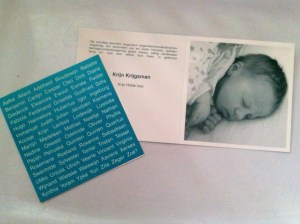 Krijn zei vorige week op zijn verjaardag opeens: ‘Mam, krijg ik ook een verjaardagsblog? Dat vind ik wel leuk nu ik 18 geworden ben.‘ Dat lukte niet. Ben over tijd. In tegenstelling tot 18 jaar geleden; toen wekten de eerste weeën me ’s morgens om 7 uur – vier dagen voor de uitgerekende datum. Tien uur later was ‘pimmetje’ er: onze oudste zoon. Nee, ons kindje moet ik zeggen natuurlijk. Aan volgende kinderen denk je dan niet echt. Alsnog in het ziekenhuis, want het frummeltje had in het vruchtwater gepoept en verslikte er zich ook nog in.