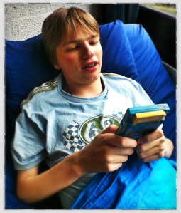 Iedere keer weer proberen we het uit te leggen. ‘Beeldschermen zijn ongelofelijk aantrekkelijk voor hem; dus televisiekijken – veel documentaires – spelletjes op de playstation, al dan niet via internet – en veel, heel veel youtube-filmpjes kijken’ leggen we dan uit. ‘Soms naar het dorp voor een boodschapje, soms ’s avonds koken voor ons allemaal. Soms, vooral na aandrang van z’n moeder, even in de tuin om wat zonlicht op te vangen. Nee, hij hoeft niet de hele dag in bed te liggen, maar veel energie heeft hij niet. Trap op en af gaat goed, als het niet drie keer achter elkaar hoeft’. Zoiets dus.