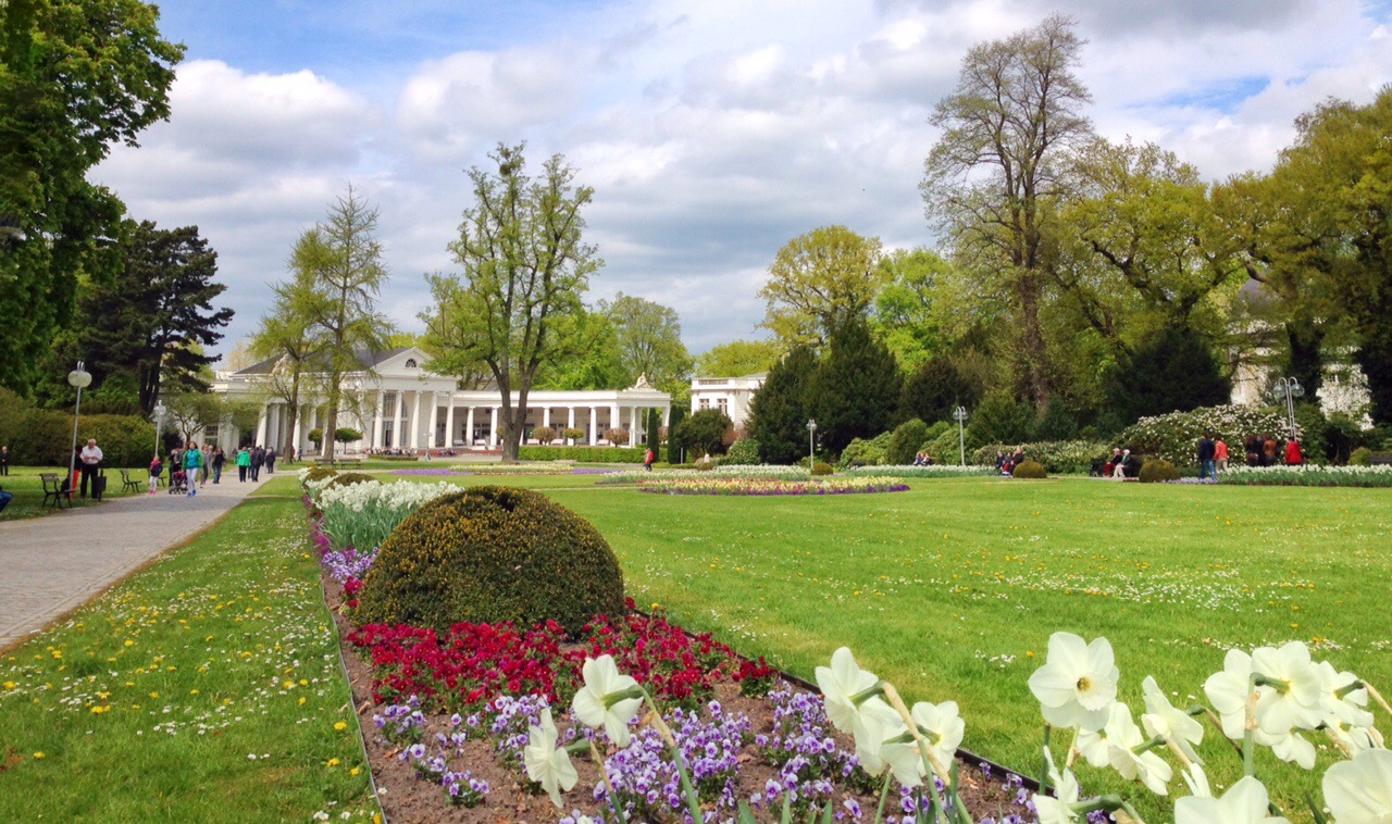 Verder zijn Robin en ik Bad Oeynhausen aan het verkennen. We hadden vooraf niets kunnen regelen, dus reden zaterdag wat rond en verbaasden ons steeds meer over waar we terecht zijn gekomen. Een vanouds statig kuuroord met medicinale badhuizen. Het kuurpark is schitterend met al het groen dat losbarst in deze lente. Fonteinen en fraai aangelegde paden en bloemperken geven een plaatje zoals die ziet op een ansichtkaart of de doos van een 1000-stukjes puzzel.