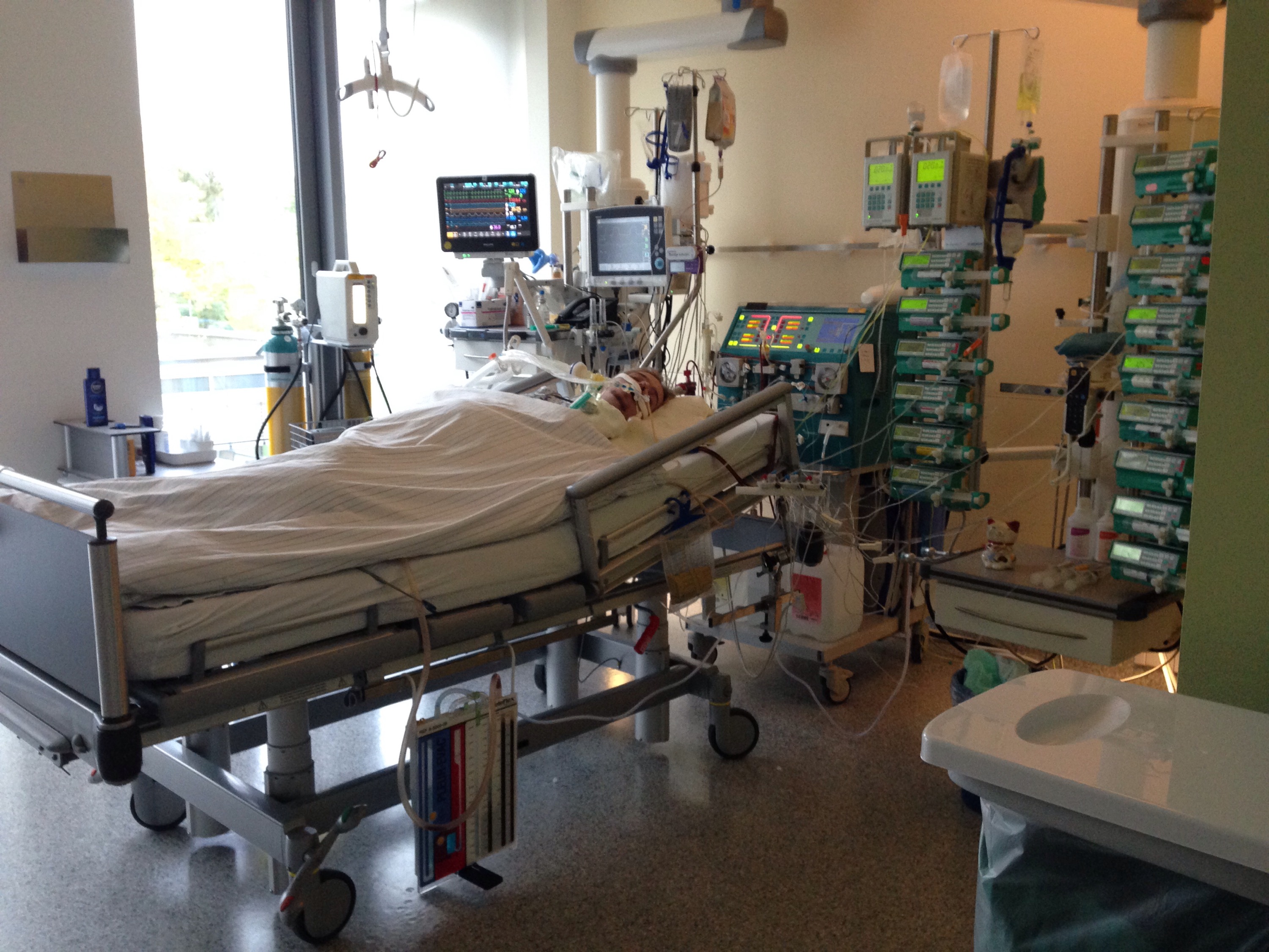 ‘Nee, zo’n klein beetje open is helemaal niet erg. Soms hebben ze hun ogen wijd open na een transplantatie’ vertelde verpleegkundige F. die de afgelopen zes nachtdiensten had bij Krijn. Een directe en spontane meid. Geroutineerd, gek op dieren, patatje Joppie chips en een zwak voor Krijn. Ze was blij dat zij erbij was en hem afgelopen donderdag naar de operatiekamer bracht. Iedere avond na half 9 ga ik nog een keer naar Krijn om naast zijn bed te zitten en zijn hand vast te houden, dan kan ik even met F. praten en vragen hoe het gaat. Op en af, maar wel stabiel. Nog steeds onder narcose.