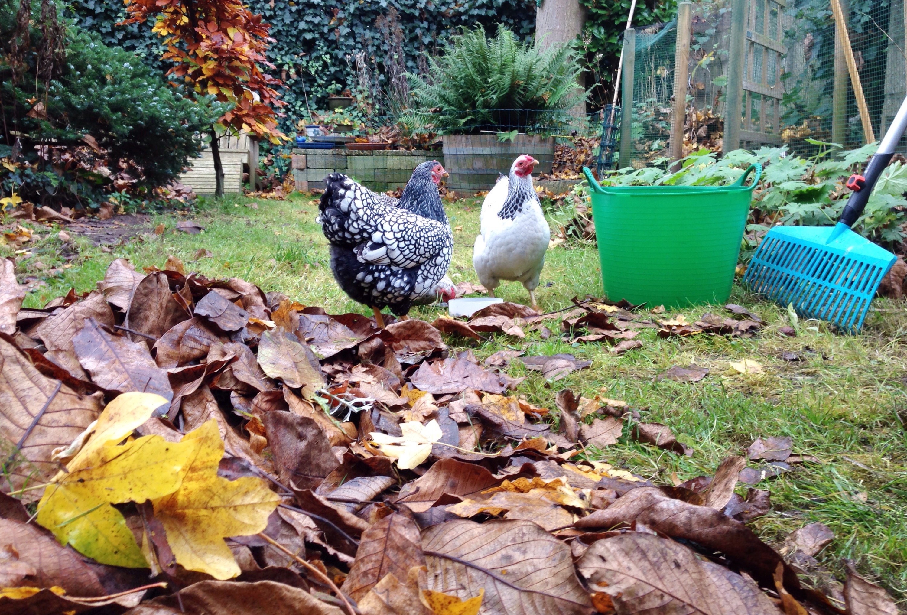 Lekker buiten zijn met dit zachte weer, in onze eigen tuin keutelen. Heerlijk. En wat verzin ik? Het voortuintje bladvrij maken. Ziet er weer keurig uit. Nu nog de achtertuin, waar de drie loslopende kipjes een puinhoop maken van al dat gevallen blad. Ordnung muß sein. Toch? Verder is het kappersbezoek achter de rug. Drie maanden uitgroei (onzichtbaar onder een haarnetje in het ziekenhuis) leverde zo’n brede grijze ‘landingsbaan’ op dat het nu of nooit was. Knoop doorgehakt: niet meer alles verven in het vertrouwde donkerblondbruin. Voor het eerst sinds jaren hebben mijn krullen een andere kleur, heel lichte highlights zorgen voor een zachtere overgang van het grijs. Wennen, maar als zelfs een kritische 17-jarige dochter erover te spreken is, zal het wel goed zijn. Benieuwd of de collega’s er ook zo over denken.