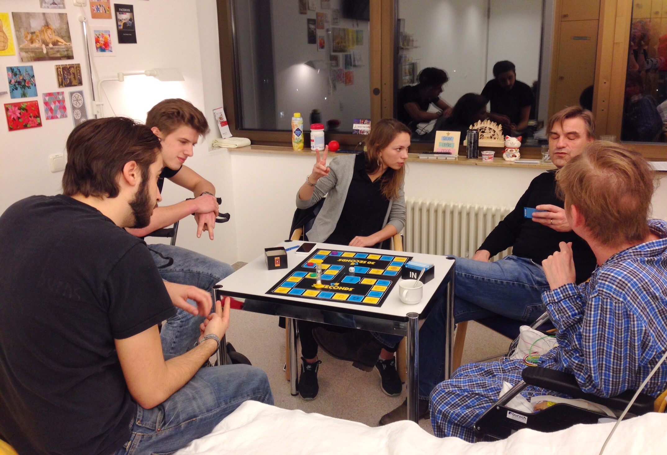 Met Kerst lagen in totaal 18 personen in de kamers op de HTX. Dat zou je niet zeggen. Het is rustig en stil, door de dichte deuren en halletjes erachter zie je geen mensen liggen. Af en toe loopt er een verpleegkundige over de gang, een arts, of bezoek. Verreweg het meeste rumoer maakten afgelopen dinsdag die 15 Nederlanders waarvan om de beurt 4 of 5 personen op Krijns kamer waren en de rest in de bezoekersruimte bij de kerstboom en koffieautomaat zat te kletsen. Wat een hoop gezelligheid, op Krijns kamer en daarbuiten! Groot succes en gelukkig was er ruimte genoeg in zijn grote kamer. Krijn genoot en wij ook: van het avondeten samen, de kerstmarkt met schaatsbaan en glühwein, de logeerpartij in ons appartement en hotel en neven/nichtenontbijt woensdag. Vrijdagochtend vertrokken ook Robin, Hugo, Cleo en Thijs naar Nederland – en begon de Top 2000.
